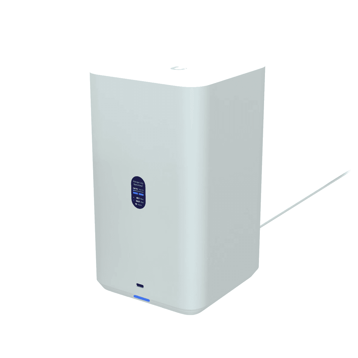 UniFi Network Attached Storage with (2) 3.5" HDD bays, 2.5 GbE networking, USB-C connectivity, and an included PoE++ adapter, all in a compact footprint.
