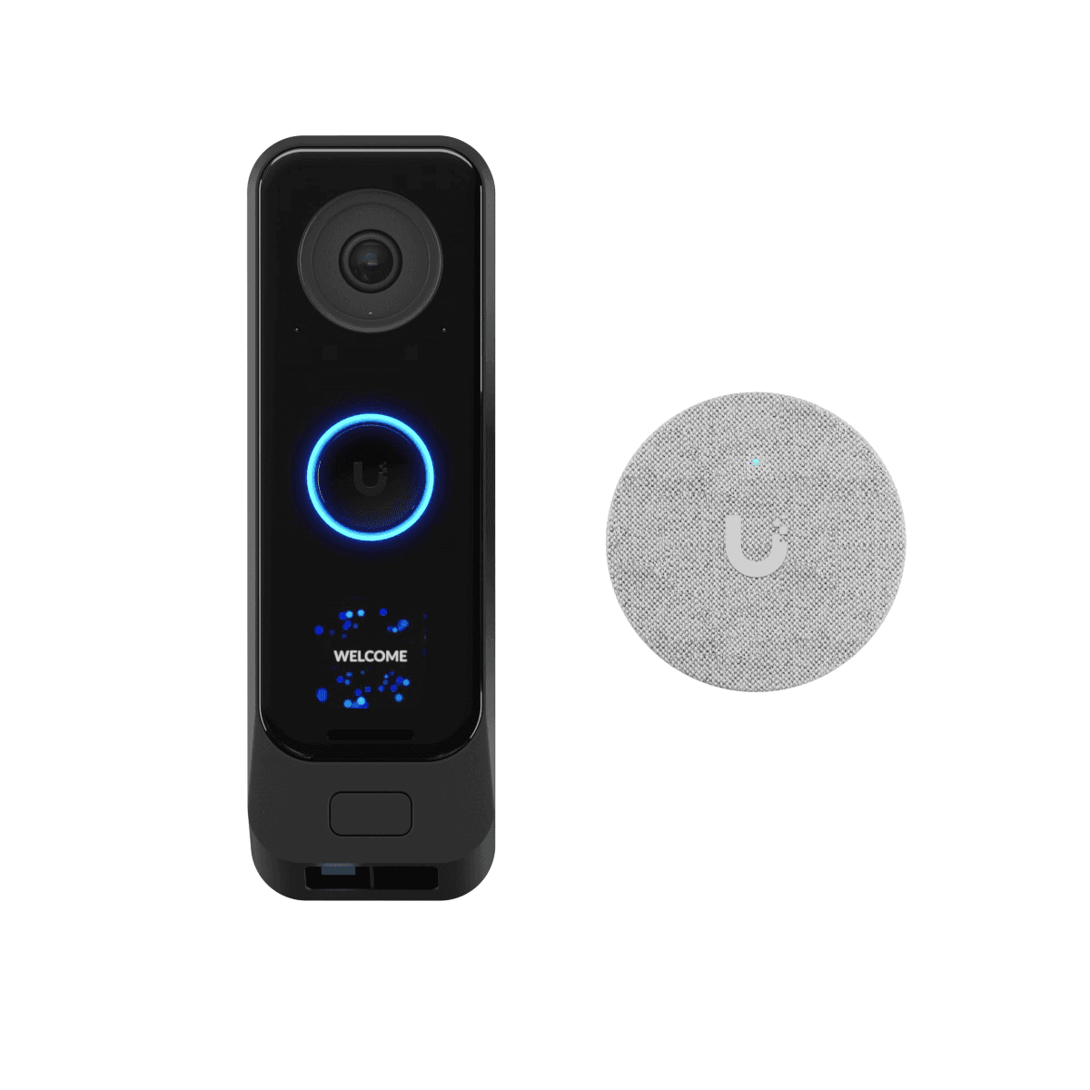Premium UniFi doorbell with integrated PoE and included PoE chime for plug-and-play installation.
